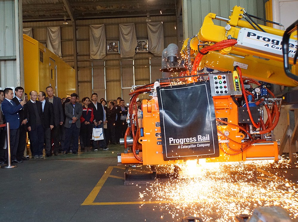 在啟世機械的焊軌機車間,與會代表觀看了采用烏克蘭巴頓電焊研究院焊接專利技術的BHP澳洲標準焊軌機現場焊接演示。
